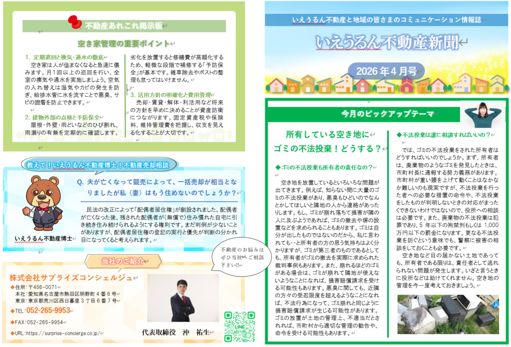 いえうるん不動産新聞2026年4月号を発行いたしましたので、お知らせいたします。